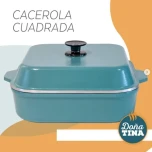 La Cacerola Cuadrada Doña Tina con Antiadherente Aqua es una pieza de fundición de aluminio de industria argentina, diseñada para optimizar el espacio en la cocina y ofrecer una cocción uniforme. Se identifica comúnmente con el código de modelo 2031 y destaca por su llamativo color aqua con revestimiento externo de epoxi poliéster.