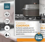 La Cacerola Cuadrada Doña Tina con Antiadherente (Modelo 2031) es una pieza de aluminio de 28,5 cm con capacidad de 5 litros, ideal para preparaciones voluminosas como guisos, carnes o pollos con guarnición. Su forma cuadrada permite acomodar mejor las porciones grandes, y su revestimiento de teflón facilita tanto la cocción sin que se peguen los alimentos como la limpieza posterior.