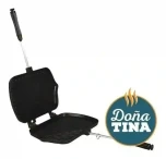 La carlitera Doña Tina con antiadherente en color Aqua es una versión estética de la clásica sandwichera de aluminio fundido, que combina el rendimiento del teflón interior con un acabado exterior en esmalte epoxi de color turquesa/aqua.