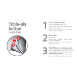 • Fondo triple de acero inoxidable, aluminio y acero inoxidable para cocción uniforme.