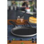 La Panquequera Tramontina Professional de 22 cm es una pieza de alto rendimiento diseñada para uso intensivo en gastronomía o para usuarios exigentes en el hogar. A diferencia de la línea hogareña (Loreto), cuenta con un revestimiento Starflon Premium de mayor resistencia y un acabado externo lijado o satinado.