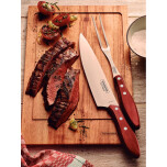 Este juego de 2 piezas, parte de la línea Churrasco de Tramontina, está pensado para facilitar el trinchado y corte de carnes. Es conocido por su robustez y comodidad en el manejo.
