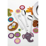 Cubiertos con formato ergonómico y con variación de dibujos, especialmente creados para incentivar y auxiliar el desarrollo de los niños.